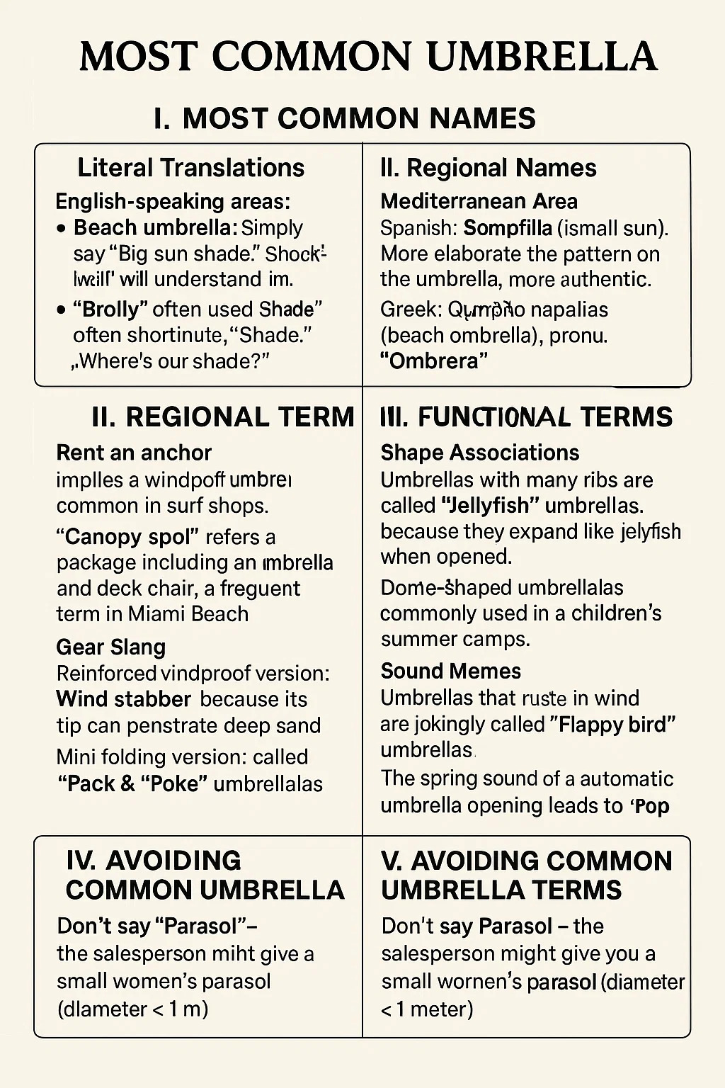 Aqui estão os nomes comuns para guarda-sóis em diferentes contextos: